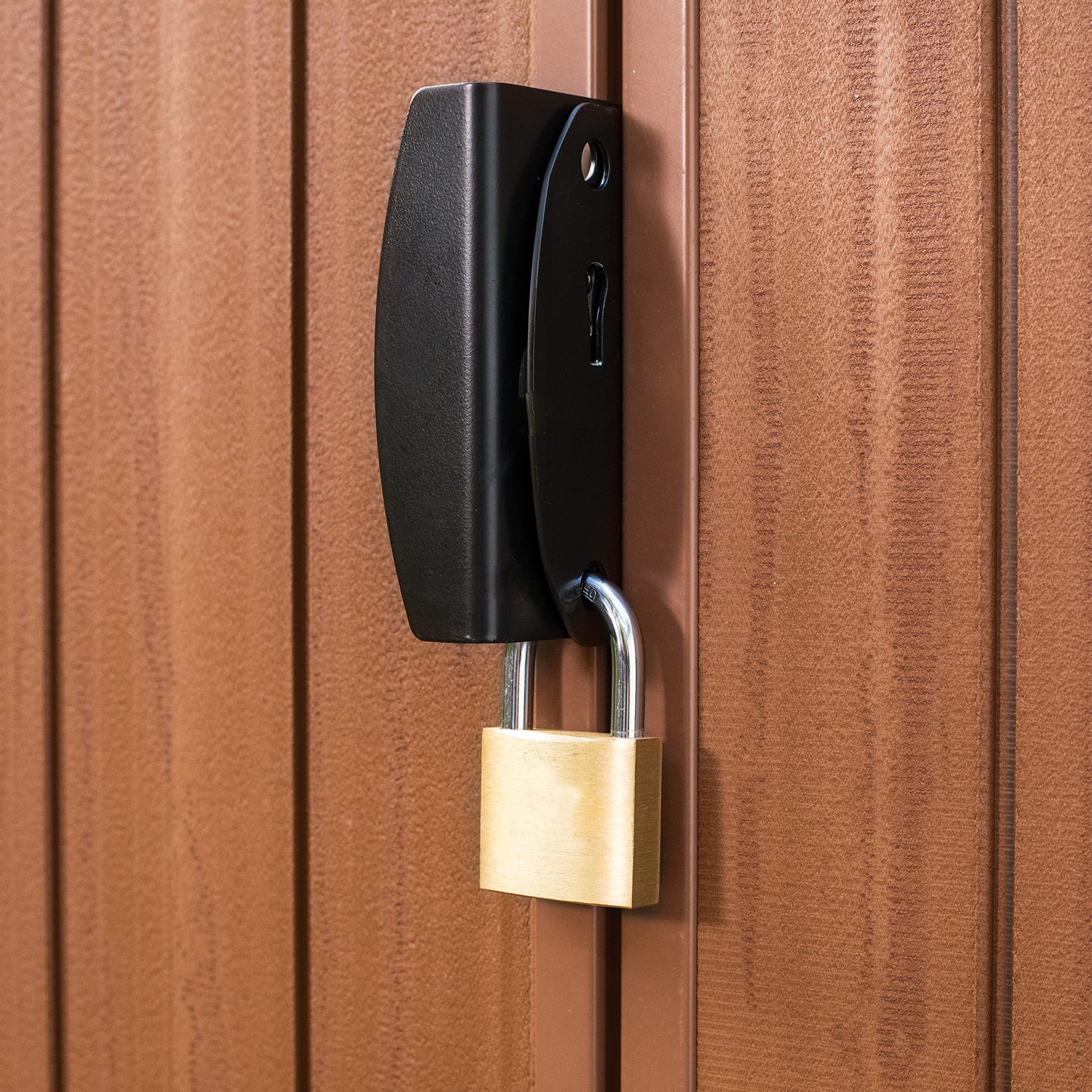 • Heavy duty floor panel with tongue and groove panels for easy assembly and lock hasp for additional security